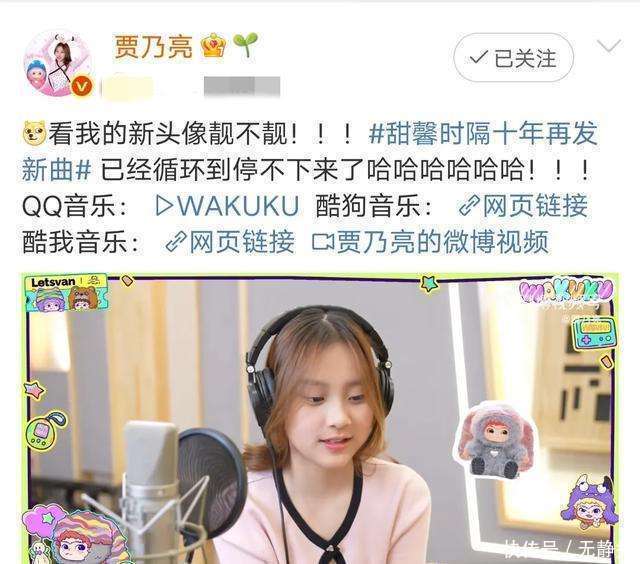 不仅把头像换成了甜馨的照片,还到处跟人安利女儿的新歌,说自己是“头号听众”。